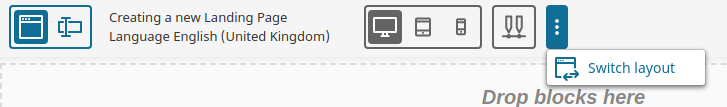 In a newly created Page you must first choose a layout which defines the available zones. You can switch it later by using the following menu: