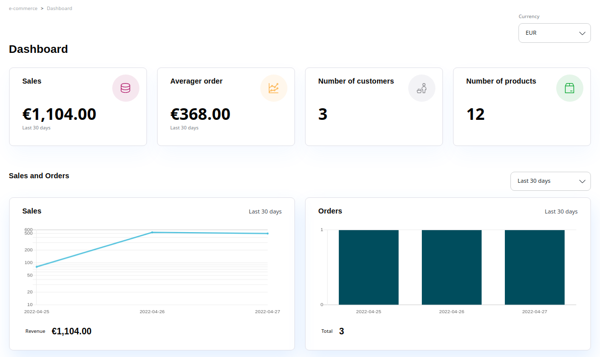 The Dashboard shows the most important information for the shop owner referring to the installation.